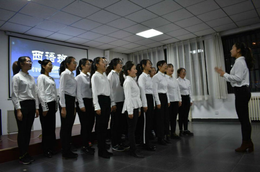 15个班级精心准备,各出奇招,通过歌声和创意,表达对棋牌游戏 、对专业的热爱,对梦想、对未来的憧憬。整场比赛洋溢着青春气息,精彩纷呈,现场观众掌声不断。西班牙语班发挥专业特色,将《Flashlight》改编成西班牙语版的《tu me iluminas》。翻译(中外合作办学)一班的《奇迹再现》,将多首歌曲进行串烧,同时辅以手语表演,让人印象深刻。