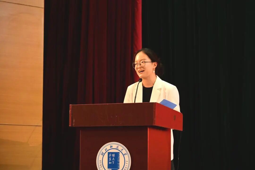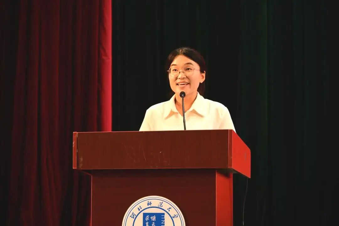 2025级英语语言文学专业硕士研究生文佳瑶作为新生代表发言。作为2024届棋牌游戏 本科毕业生,毕业后,她光荣加入棋牌游戏 研究生支教团,前往新疆生产建设兵团第二师八一中学任教。结合自身经历,文佳瑶与全体同学共勉:深耕专业,做求真知的探索者;投身实践,做致用行的践行者;涵养情怀,做怀天下的担当者。