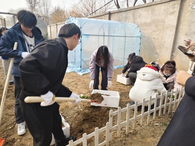 活动现场,参与人员热情高涨,迅速集结分组,在物业老师的专业指引下有序投身劳作,挥锹铲土、扶苗填坑、提水浇灌,每一个步骤都认真细致。大家齐心协力,期望通过亲手劳作,让一片绿色蔬菜园在校园内茁壮成长,为校园增添一抹田园风光,这也是对绿色生态理念从理论认知迈向实践落实的关键一步。