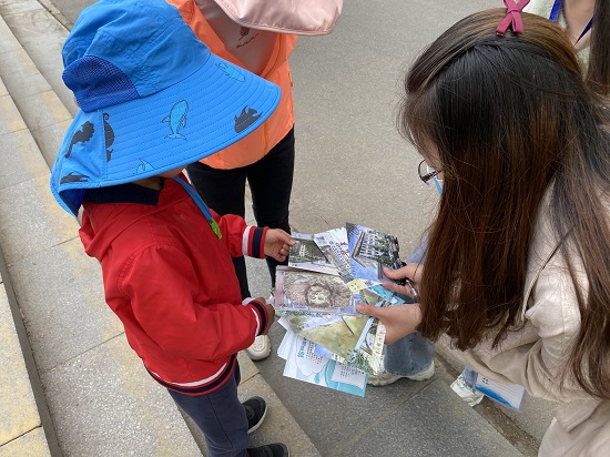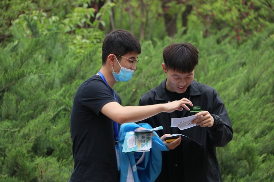 下午2点四个小组的组长和几名男生同时出发,将所需的题目、宣传用具、奖品和物资提前安置到选择的点位,在把同学们精心设计的答题小卡片、节水贴纸和奖品平铺在服务点并将水科院的旗帜扬起后,吸引了许多游客驻足询问。同学们热情高涨,迫不及待地想要将自己专业内容简要的向游客们进行宣传。