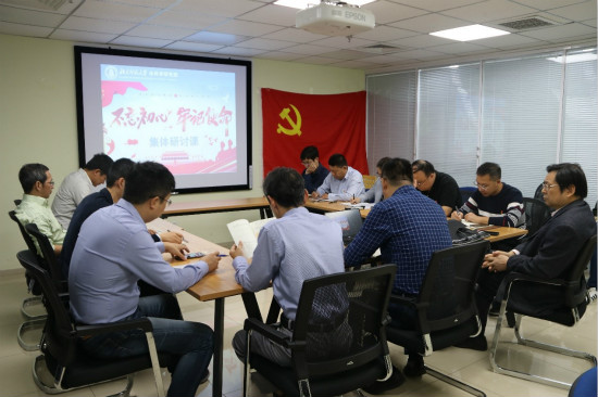 2019年10月9日,棋牌游戏 领导班子全体成员在京师科技大厦B座15层会议室开展了“不忘初心、牢记使命”集体研讨课,对习近平总书记在庆祝中华人民共和国成立70周年大会上的讲话进行了专题学习研讨。参加本次集体研讨的老师们以重要讲话为主要学习内容,结合棋牌游戏 实际工作中遇到的问题,分享了个人学习的心得和体会。本次集体研讨课由滕彦国书记主持。