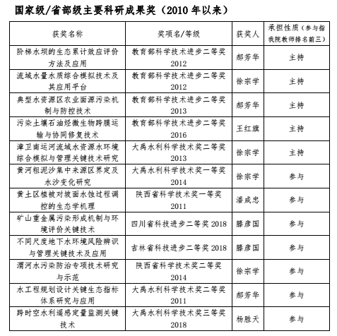 牵头获得教育部科技进步二等奖4项,水利部大禹科技进步二等奖1项,与其他单位合作获得省部级二等奖以上10余项。2013-2018年期间,出版专著33部,教材9部,发表SCI论文406篇,其中二区以上论文150余篇;获国家发明专利授权70余项;软件著作权40余项,其中开发的Eco-Hat、BNU-SWAT、iTough等模型和软件被国内外同行广泛下载和使用,产生了重要影响。