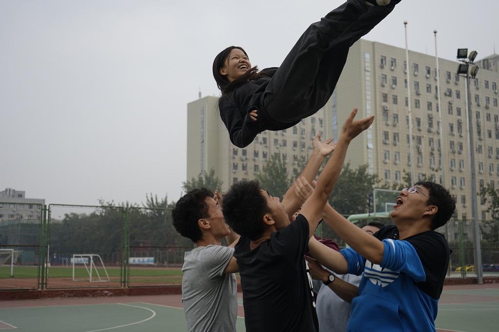 本次趣味运动会以增进友谊,增加了解,增强班级凝聚力为主旨,采取分组竞赛形式进行,充分调动了同学们的热情,使大家能够积极参与其中。本次运动会共分为六个项目,分别为篮球3+1、踩报纸、气球接力、纸牌连连看、乒乓速递和大绳之舞。其中以“篮球3+1”最为紧张刺激,需要组内男女同学默契配合,比赛开始后各队队员们都积极投入、全力以赴,裁判员公平公正、严肃认真,保证了比赛的顺利进行。在丰富多样的活动中,不仅小组内部大家同心协力开商讨战术,互帮互助,各个小组之间也互相帮助鼓励、加油助威,在整个过程中充满了笑声,加油声,掌声,彼此互相调侃,气氛轻松愉悦,充分发扬了友谊第一,比赛第二的精神和浓厚的团结精神。