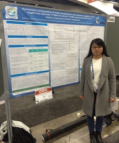 棋牌游戏 博士生刘沙沙的论文"Characteristics and degradation of carbon and phosphorus from aquatic macrophytes in lakes: insights from solid-state 13C NMR and solution 31P NMR spectroscopy"在分会场"Groundwater-surface water interactions:identitying and integrating physical, biological, and chemical processes across scales"以海报张贴的形式进行了展示。