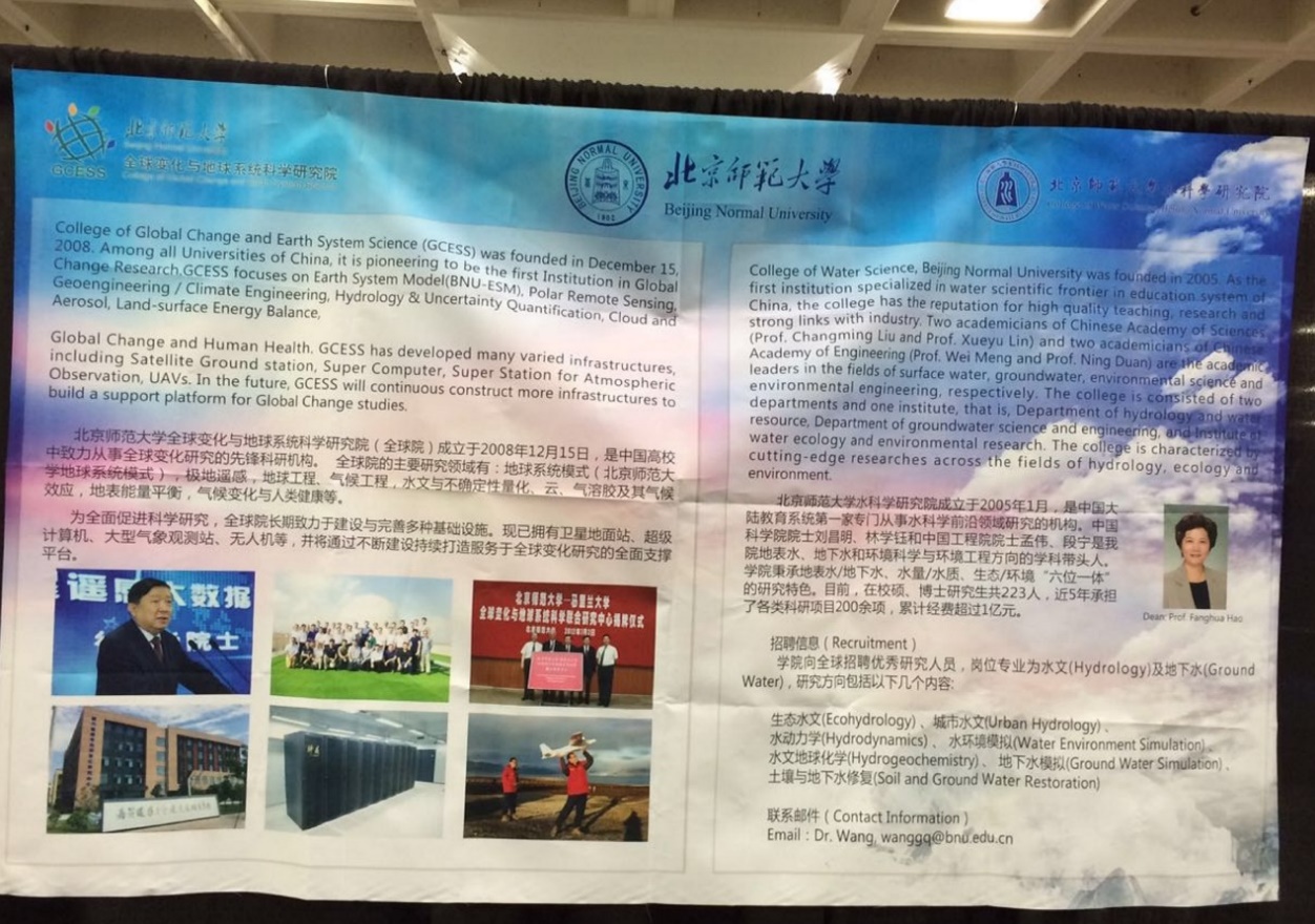 2016年12月12日-16日,棋牌游戏 院长郝芳华教授、水文水资源系主任鱼京善教授以及2014级博士生田培和刘沙沙等共7名师生赴美国旧金山参加2016年美国地球物理学会的秋季年会(2016 AGU Fall Meeting),开展了学术交流、对外宣传和吸引人才等活动。
