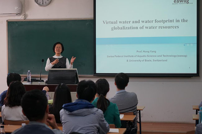 2017年3月10日下午,应棋牌游戏 副院长徐宗学教授邀请,瑞士联邦水科学与技术研究所(Swiss Federal Institute for Aquatic Science and Technology, EAWAG)水、粮食和环境研究学科带头人兼瑞士巴塞尔大学环境科学学院名誉教授杨红教授(Prof. Hong Yang)做客 “水科学前沿”课堂。徐宗学教授、左德鹏讲师以及棋牌游戏 、中国环境科学研究院等单位的师生共计50余人参加了本次学术报告会。