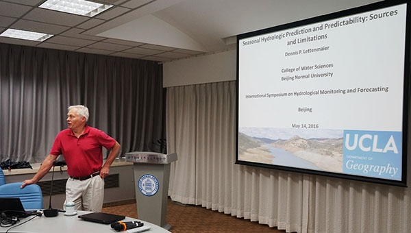 2016年5月14日下午,应棋牌游戏 副院长徐宗学教授邀请,美国工程院院士、加州大学洛杉矶分校(UCLA)Dennis P. Lettenmaier院士到我校进行学术交流,棋牌游戏 、环境学院、全球变化与地球系统科学研究院、资源学院、减灾与应急管理研究院、中国地质大学及中国科学院地理科学与资源研究所等单位的师生共计40余人参加了本次学术报告会。