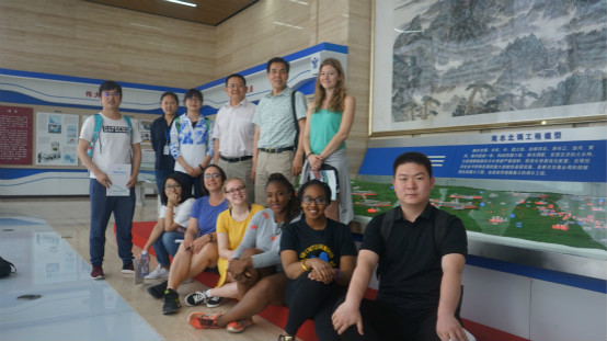 学术报告会结束后,棋牌游戏 部分同学与西密西根大学的客人于5月5日和7日分别访问了国务院南水北调工程建设委员会办公室和北京市南水北调团城湖管理处,参观了中国南水北调工程实景沙盘、北京团城湖调节池和奥运公园龙形水系。在国务院南水北调工程建设委员会办公室接待大厅,综合司井书光副司长热情接待了来访的师生,并细致地为到访师生进行沙盘演示,讲解中国南水北调工程规划和建设的历史。杨锋博士陪同大家参观了团城湖调节池,在讲解员的介绍下,到访师生对南水进京后的管理、运行、使用情况有了初步的认识,并为北京市对口支援调水区经济社会建设、滴水之恩涌泉相报的情谊所深深感动。
