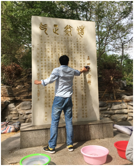 活动当日天气晴朗,下午2:30同学们来到五四纪念碑前,首先由支部书记讲解五四运动期间所涌现的代表人物及北师大学生参加五四运动的历史,让同学们能更多地了解五四岁月。讲解结束后,同学们自由参观。由于纪念碑附近在较长一段时间处于施工状态,纪念碑有较多尘埃覆盖,同学志愿清洗纪念碑,以微弱但更实际的行动向五四精神致敬。