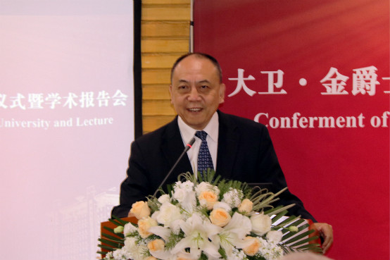 大会伊始,程红光处长介绍了大卫·金爵士的学术研究背景和任职情况。随后,郝芳华副校长为大卫·金爵士颁发了棋牌游戏 名誉教授聘任证书,并且赠送了具有深远意义的礼物—木铎。聘任仪式结束后,齐晔教授介绍了他与大卫·金爵士在学术交流上合作历程。