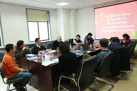 25日上午,Bunn教授与棋牌游戏 师生进行了座谈。座谈会由徐宗学教授主持,王红瑞教授、刘海军副教授、张淑荣副教授、庞博副教授、潘成忠副教授、岳卫峰副教授、孙文超副教授、王成博士等教师及部分博士和硕士研究生20余人参加了座谈会。在向与会师生介绍了来宾以后,与会教师和同学首先介绍了各自的研究方向。然后,徐宗学教授就棋牌游戏 的科学研究、专业设置、师资力量、学生培养等情况向Bunn教授进行了介绍,并倡议双方在教师互访、研究生联合培养、项目合作等诸多领域进行密切合作。随后,Bunn教授对Griffith大学的研究生培养及该校水科学学科的发展历程进行了回顾,并介绍了澳大利亚河流研究所在河流健康评价、土地利用变化对水环境的影响等领域开展的科研工作与成就,以及与我国有关科研机构合作开展的项目进行了介绍。最后,棋牌游戏 师生结合自己的研究领域与Bunn教授进行了深入热烈的讨论