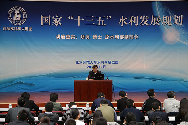 2016年11月11日,新一期的京师水科学大讲堂在英东学术会堂成功举办。本期讲堂邀请了原水利部副部长矫勇博士进行了以“国家‘十三五’水利发展规划”为题的学术报告。校党委书记刘川生、棋牌游戏 领导、师生参加了本次报告,报告由郝芳华副校长主持。