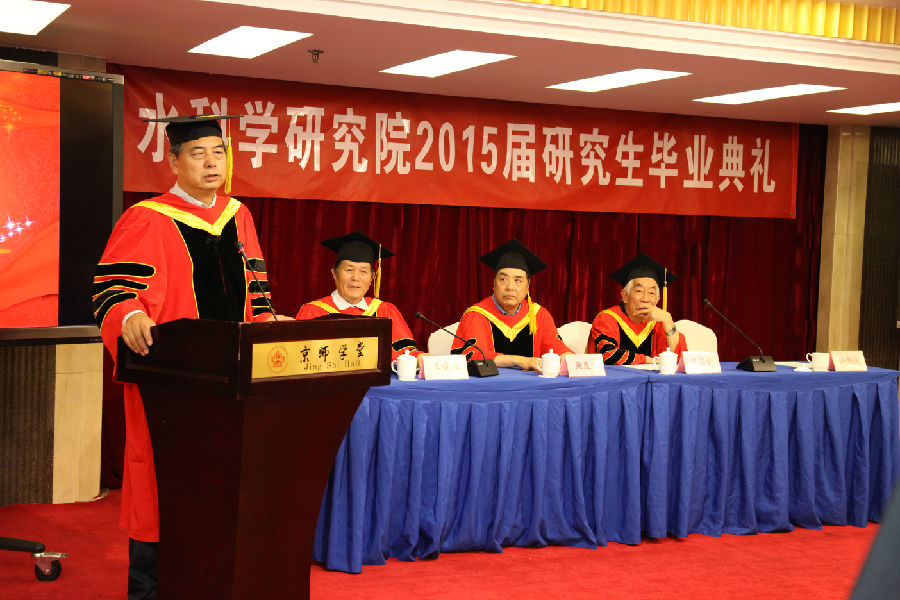 2015年6月26日,棋牌游戏 2015届研究生毕业典礼暨2015年运动会表彰会于京师大厦二层多功能厅隆重召开。棋牌游戏 名誉院长、原水利部部长汪恕诚教授,中国环科院副院长柴发合教授,以及棋牌游戏 党政领导、教师、毕业生及学生家属参加了典礼和表彰会。