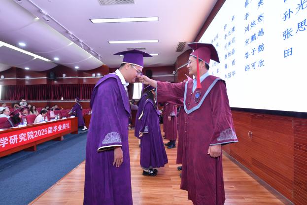 随后,程红光老师、宋永会老师为博士毕业生颁发学位证书并扶正流苏;左德鹏老师、胡立堂老师、郝增超老师、豆俊峰老师为硕士毕业生颁发学位证书并扶正流苏。