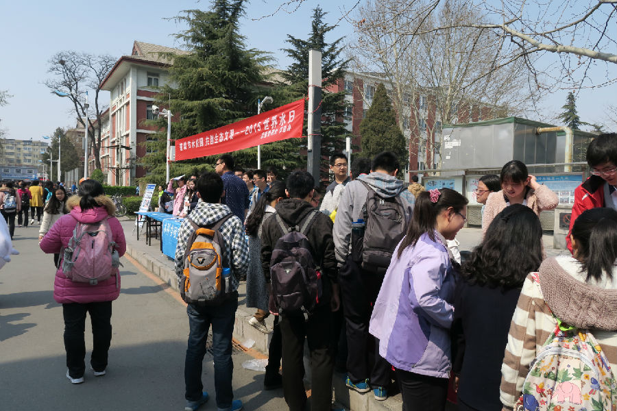 015年3 月22日是第二十三届"世界水日”,3月22至28日是第二十八届"中国水周”。这一届"世界水日”的宣传主题为"节约水资源,保障水安全”。为此,棋牌游戏 研究生会举办了"建设节水校园,共创生态文明”为主题的宣传活动。此次活动还得到我校后勤管理处节能办的大力支持,棋牌游戏 党总支副书记吕晓慧老师以及后勤管理处节能办公室主任郝成庆老师等到现场参加了活动。