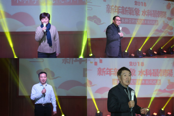 联欢晚会伊始,郝芳华副校长、章四龙院长、环科院郑丙辉副院长、刘昌明院士分别致新年贺词。他们肯定了上一年的工作,为全体师生送上了美好的祝福,鼓励大家继续努力、不断学习和创新,期待新的一年取得更好的成果。