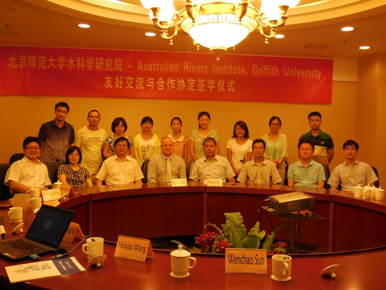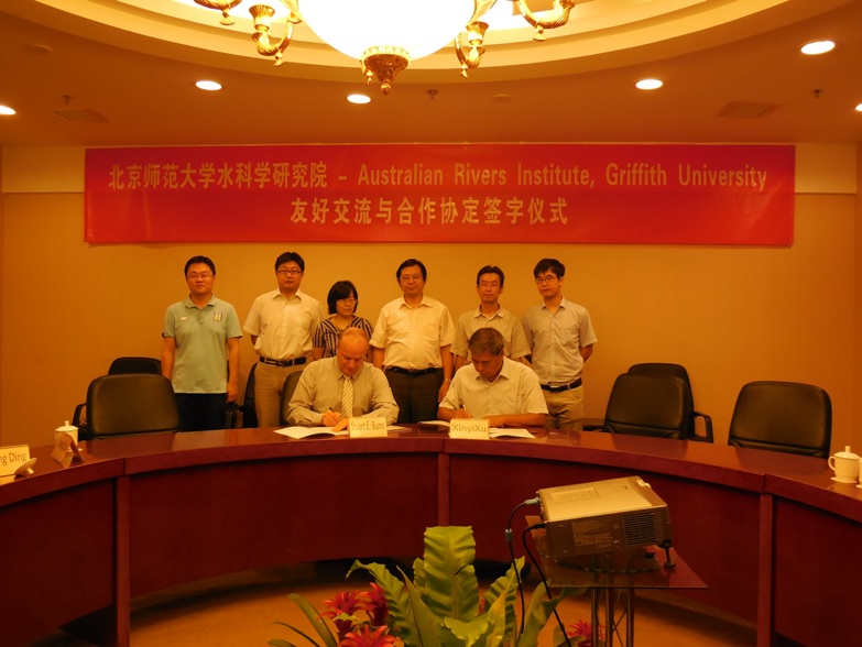2013年8月9日,澳大利亚Griffith大学澳大利亚河流研究所所长Stuart Bunn教授访问棋牌游戏 ,与许新宜院长共同签署了棋牌游戏 与澳大利亚河流研究所的友好合作与交流协议(MOU)。许新宜院长、徐宗学副院长、丁爱中副院长、王会肖教授与棋牌游戏 相关教师和博士硕士研究生近20人参加了签字仪式。