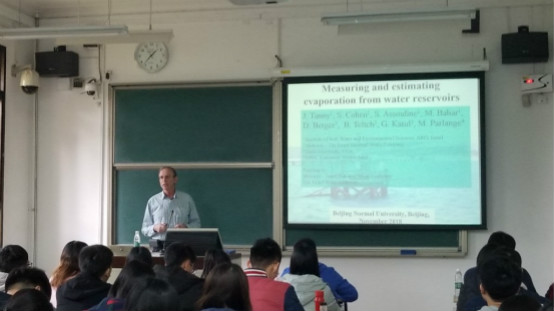 2018年10月27日,应棋牌游戏 刘海军教授的邀请,以色列农业研究组织水土环境研究所(Institute of Soil, Water and Environmental Sciences, Agricultural Research Organization, Israel)高级研究员,Josef Tanny教授对北师大水科院进行为期11天的来访,在此期间,Josef Tanny教授为我校师生带来了一次精彩的学术报告“Microclimate, evapotranspiration and water use efficiency”,和两次课程讲座,“Crop evapotranspiration–models and measurements”和“Evaporation from open water bodies”。 Josef Tanny教授的报告和课程受到了广大师生的热烈欢迎,现场座无虚席。