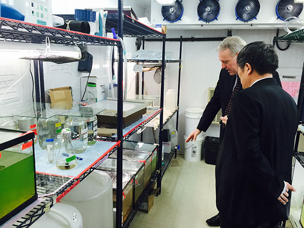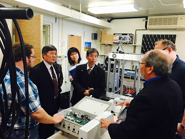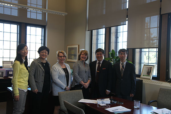 随后的两天,代表团又访问了位于萨斯喀彻温省萨斯卡通市的萨斯喀彻温大学。该校已于去年10月与棋牌游戏 签订了合作备忘录,两校预期将在水科学及教育领域展开合作研究及联合培养等工作。代表团首先于20日在Karsten Liber院长的带领下参观了学校的毒理学中心,双方就水质学相关研究进行了交流。之后,代表团一行又受到Karen Chad副校长的接见,Karen Chad副校长代为转达了校长先生的问候,并提出希望将棋牌游戏 作为校长先生今年出访的第一站,以彰显对两校合作的重视。21日代表团首先在上午由John Pomeroy院长带领参观了学校的水文学中心,并通过电视会议的形式,与远在落基山脉上的观测点的研究员进行了学术讨论。中午代表团一行以午餐会的形式会见了艺术与科学学院 的Lawrence Martz 副院长及农学与生物资源学院的Fran Walley副院长双方表达了对今后合作的良好预期。下午,在Jeff McDonnell副院长的带领下,代表团参观了全球水安全研究院(GIWS)及其新建的矿区覆盖测试中心。在GIWS,双方就联合办学等问题的细节进行了一进步的磋商,并设立了今后合作的若干重要时间节点。
