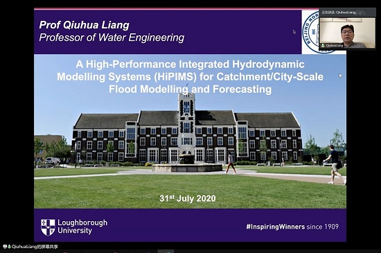 2020年7月31日,应城市水循环与海绵城市技术北京市重点实验室主任徐宗学教授邀请,英国Loughborough大学Qiuhua Liang(梁秋华)教授为实验室师生及相关人员做了一场精彩的学术报告。来自棋牌游戏 、武汉大学、清华大学、华南理工大学、中国水科院、中科院地理所、南京水科院及水利部等国内多所高校和科研机构的160余名专家学者和研究生参加了本次线上学术报告会。