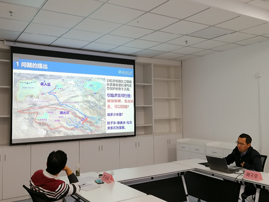 学术报告涉及《地下水管理条例(草案)》背景及解读、我国依赖地下水的生态系统调查与保护设想等政策层面;受水区地下水调蓄及恢复、引调水工程沿线地下水生态环境与水质演变等学术层面。其中棋牌游戏 胡立堂教授和王膑博士生分别作了题为“引哈济党调水工程对地下水生态环境影响的模拟研究”和“某生态脆弱区排污事件地下水污染治理工作的思考”的学术报告。