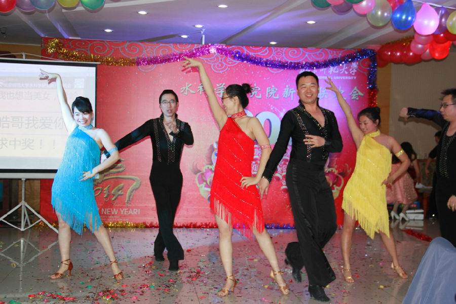 舞台剧《相约水科》通过舞蹈和歌曲的方式,表现了水科学子在科研和生活中的积极心态,彩扇飘逸的女舞、青春帅气的男舞、细致优美的新疆舞、活力四射的合舞与一首改编后的《死了都要改》将整场联欢会带入第一个高潮。在T台秀《水科Style》中,女生身穿旗袍,带来了含蓄古典的中国之美;男生朝气蓬勃,迸发出时尚新颖的气势;最后,模特们结合专业特色,身穿实验服、地质工作服和印有专业词汇的文化衫,展现了棋牌游戏 三个系所的工作与生活风采。一首《我只在乎你》唱出了关于爱的真谛。由博士生表演的拉丁舞伴随着火辣动感、热情奔放的舞步也引来了观众们的阵阵掌声。歌曲串烧《我们好像在哪见过》、《董小姐》、《你是我心内的一首歌》、《大约在冬季》更是表达了同学们对爱的祝福与期盼。